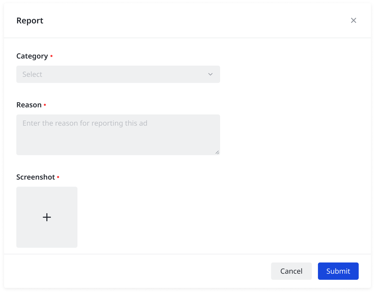 In order to maintain consistently high quality and user experience of Pangle ads for your users, we have provided an ad reporting portal for developers to report non-compliant ads. You can report an ad that you believe to contain fraudulent, misleading, violent, or vulgar content.